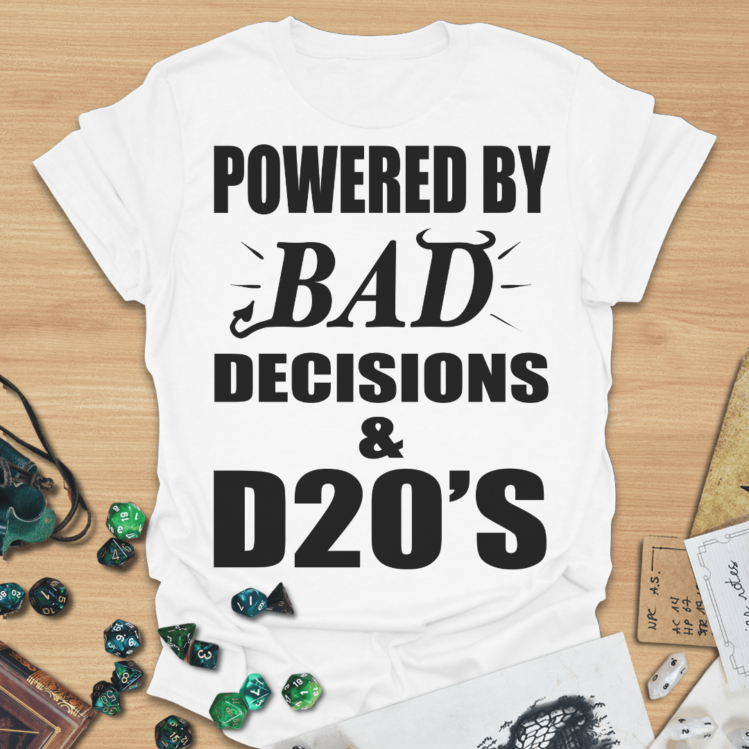 Powered By Bad Decisions & D20s TXT T-Shirt