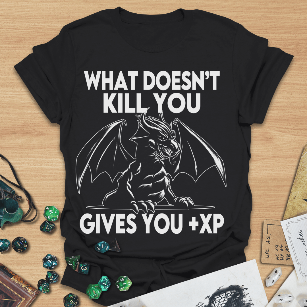 What Doesn't Kill You Gives You +XP Woodblock Dragon T-Shirt